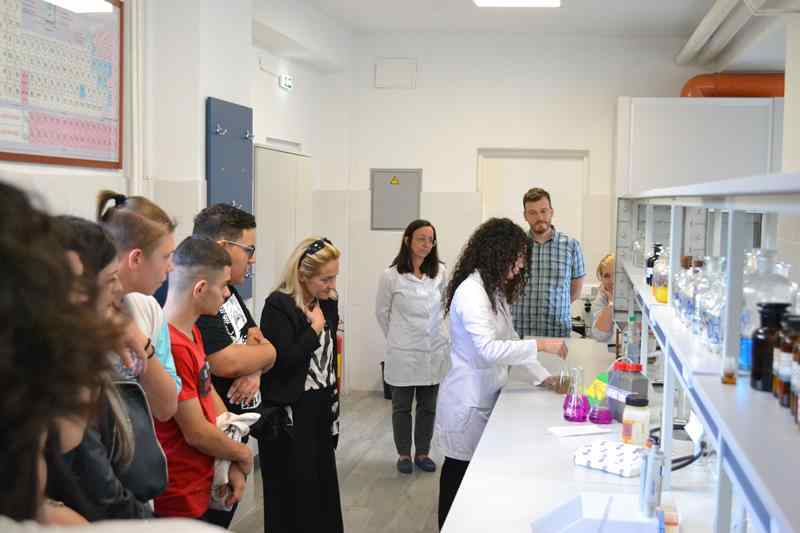 Ученици су у Чачку боравили од 1. октобра до 7. октобра.  У тим данима били смо домаћини који су осмислили интересантан и садржајан програм.  Након традиционалног дочека  сољу и хлебом и изложбе у холу школе о дружењу и боравку у Македонији,  упознали смо ученике са школом и програмом.  Први дан био је посвећен вршњачком радионицама о здрављу који су припремили наше ученици:  о менталном и репродуктивном здрављу, болестима зависности и здравој  исхрани.  Радионице су одржане у мејкерслабу. Тог дана школу је посетила ТВ екипа Лав телевизије.  Посебно занимљиве радионице биле су у оквиру представљања школе и њених смерова које су организовале професорке Сања Ђокић и Марија Спасојевић у лабораторији, Драгана Мајсторовић у апотеци и Марија Крсмановић у хематолошкој лабораторији. Посетили смо установе културе: Градску библиотеку “Владислав Петковић Дис”, Народни музеј, Културни центар, потом Канцеларију за младе, где је одржана радионица Моћ позитивних порука, установе инклузивне културе ШОСО “1. новембар” и Удружење глувонемих, упознали град, обале Мораве. Цео један дан био је посвећен лепотама Овчарско-кабларске клисуре, манастира Никоље и мале цркве Кађенице, вожњи катамараном уз стручно вођење професора Горана Шипетића. Ученици су се креативно изражавали на малом часу фолклора са кореографом и нашом професорком Маријом Крсмановић, у радионицама посвећеним пријатељству, демократским вредностима правећи букмаркере и поетски пишући заједничку песму. Последњег дана учествовали су у динамичној и интересантој потрази за благом коју је координирала професорка Јелена Драмићанин.